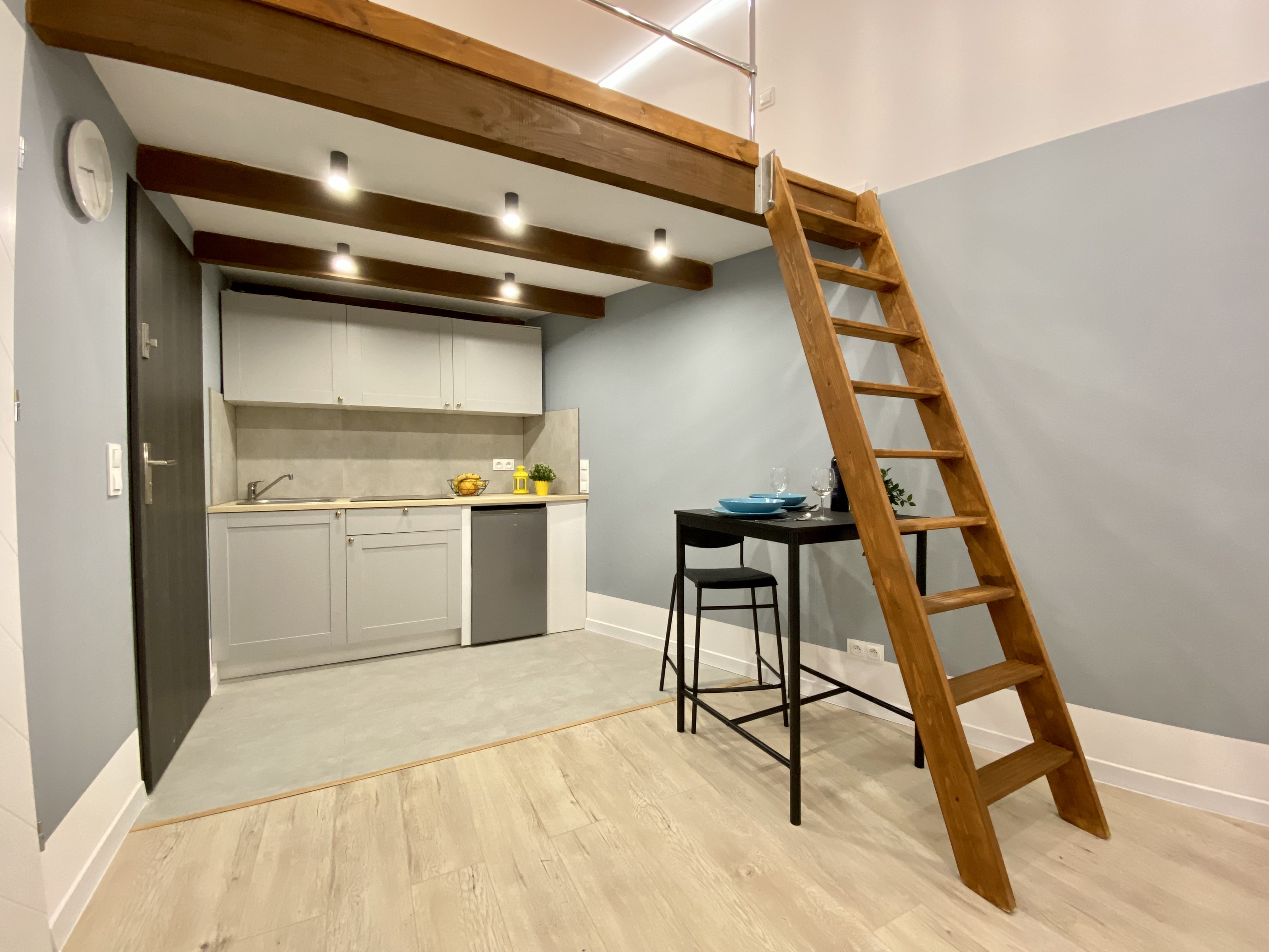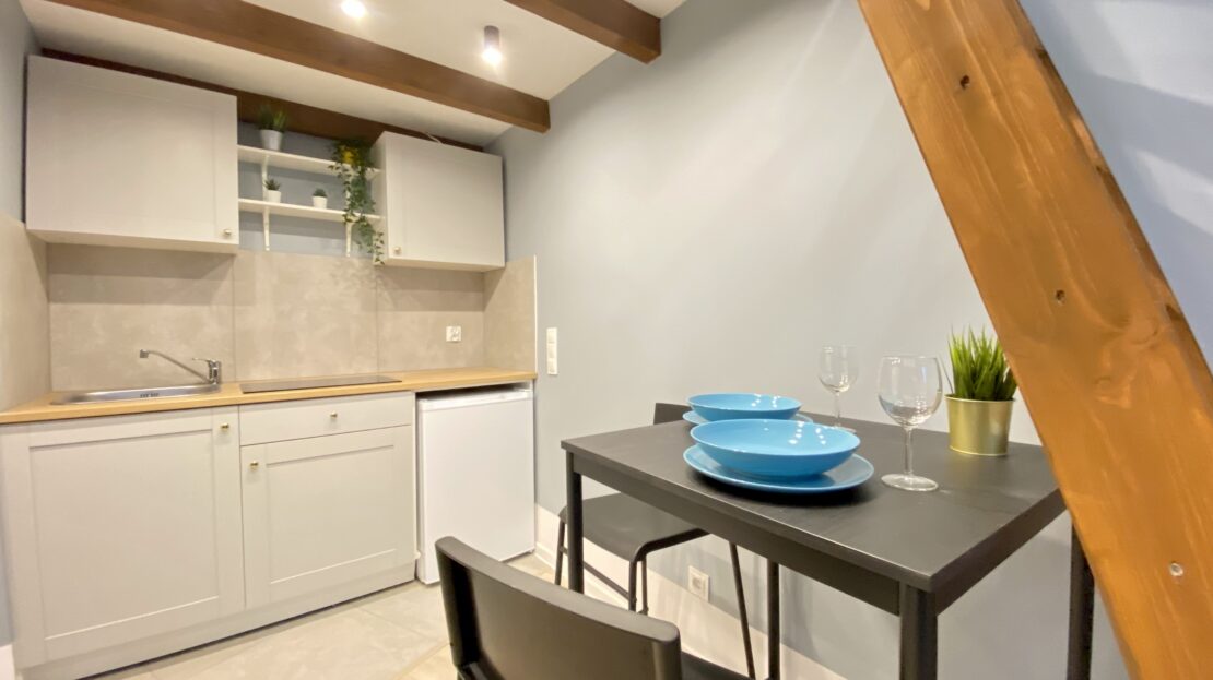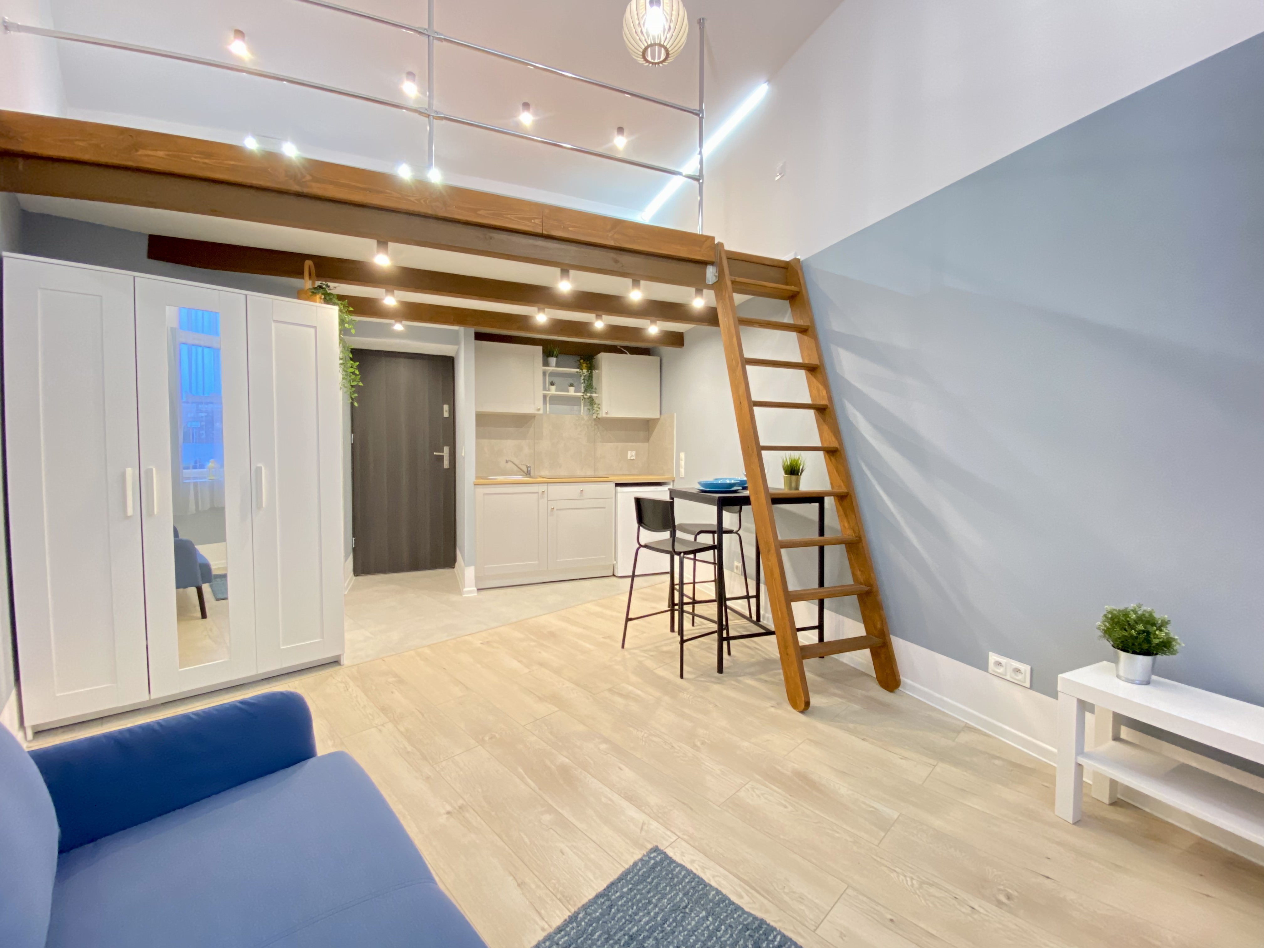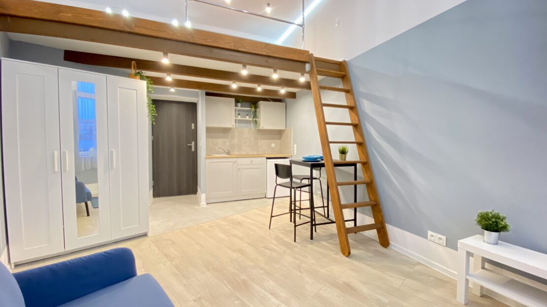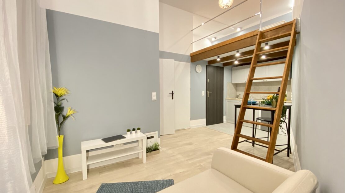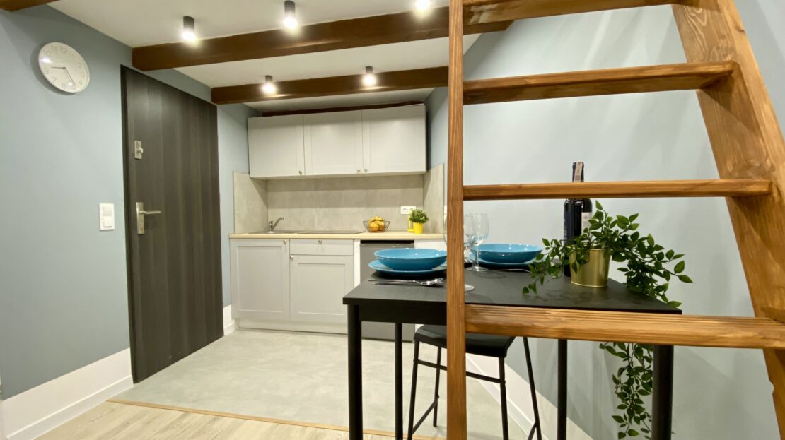 - Kawalerka z osobną kuchnią z oknem i antresolą = 1850,00 zł + media po stronie najemcy.